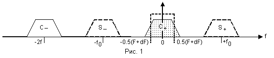 Процедура формирования КО предполагает смещение спектра с шагом ±fd, знак которого зависит от коэффициента d, и последующую двухканальную фильтрацию низких частот операторами L{…} с П - образной частотной характеристикой c(kΔt)=L{s(kΔt) exp(j2p fd kΔt)}= L{s(kΔt) exp(j 0.5πk)}.