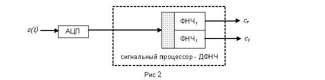 2. Низкочастотный эквивалент в формате комплексной огибающей можно образовать из цифровой последовательности отсчетов полосового сигнала путем смещения спектра последовательности к нулевой частоте и последующей двухканальной фильтрации КИХ фильтрами нижних частот со взаимно согласованными частотными характеристиками. Частота дискретизации обрабатываемой последовательности должна находится в определенном соотношении с центральной частотой полосового сигнала.